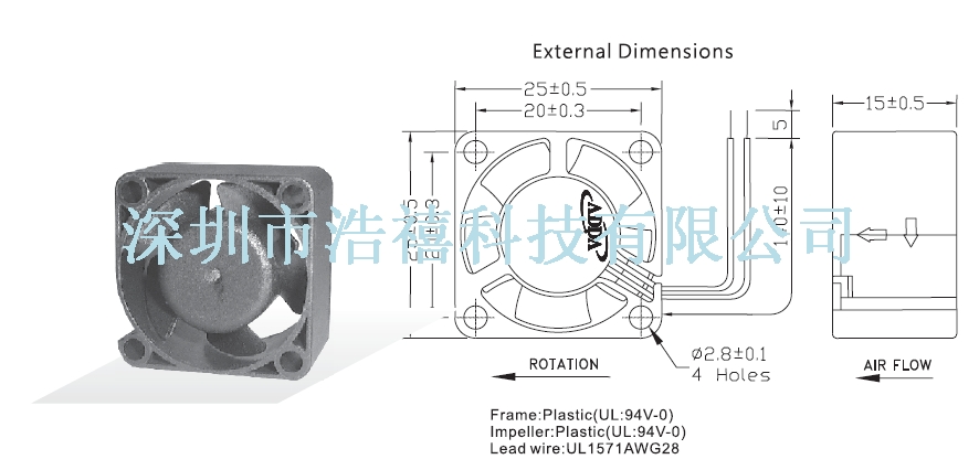 25x25x15 | AD0205HB-D51(T) | ◎ | 5 | 0.070 | 8000 | 1.600 | 0.100 | 17.0 | ![]() |