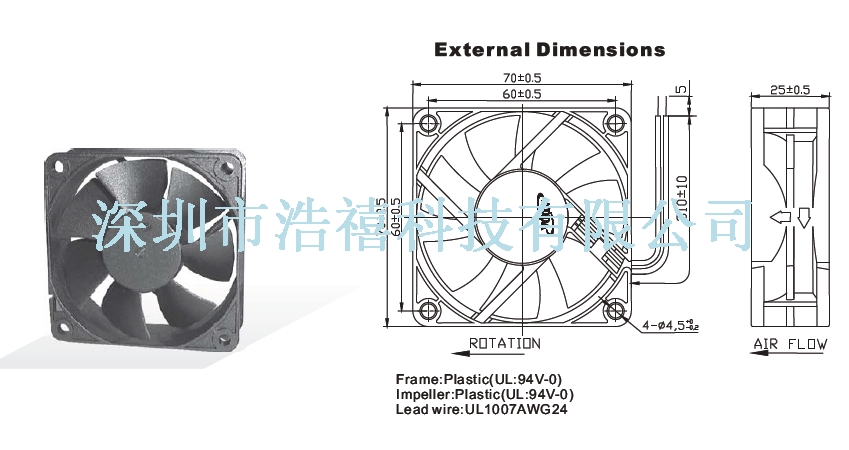 Fan = WATERPROOF-Fan | Size = 70x70x25 | Speed = | Flow = | Noise = |
